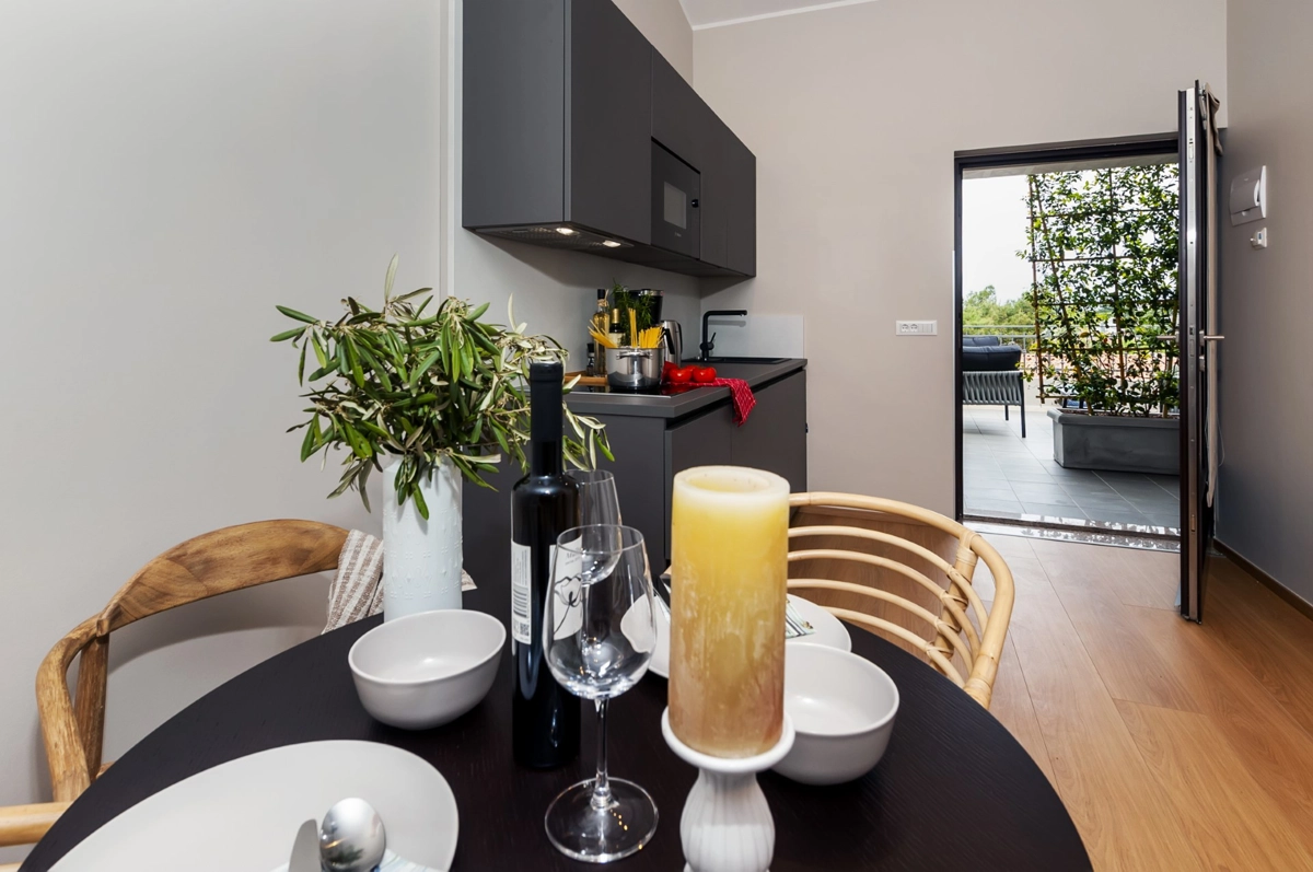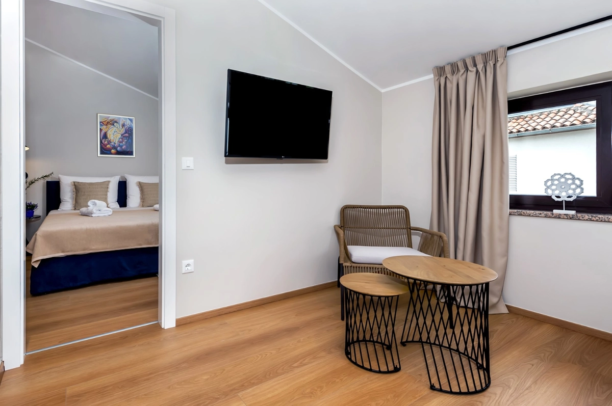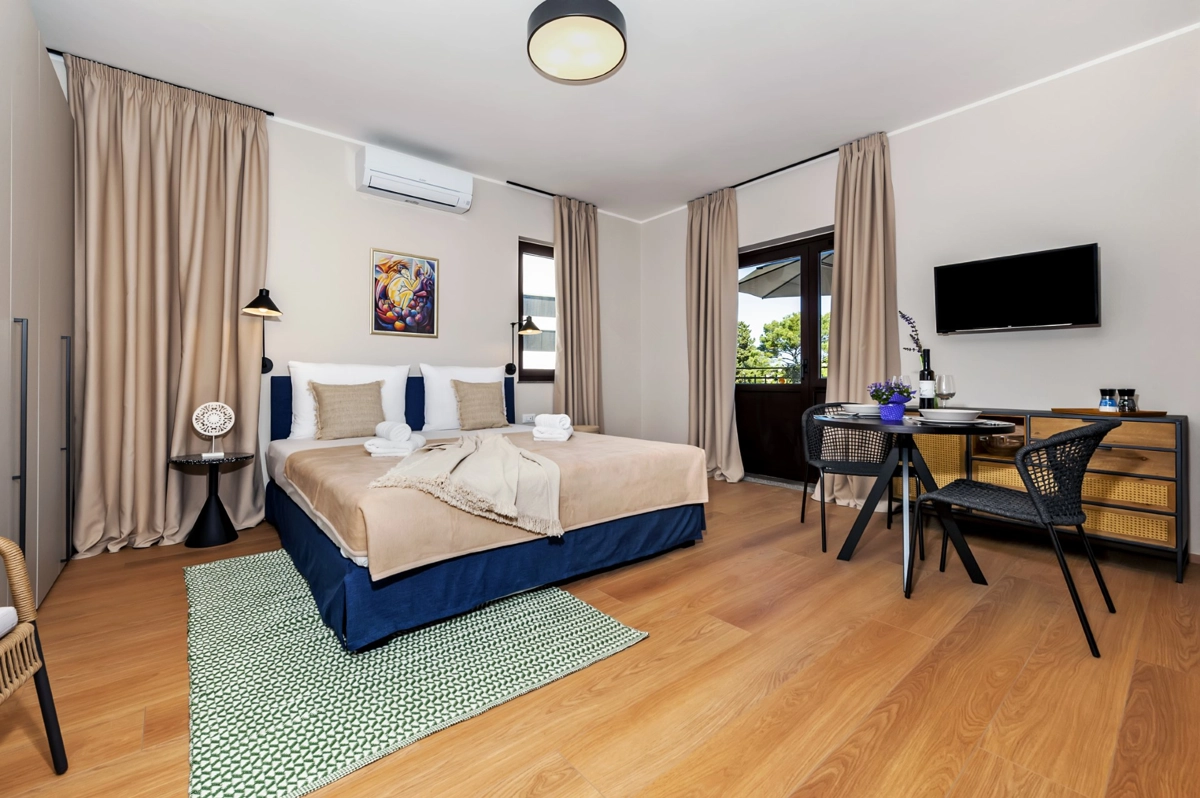 The completely newly renovated Sunset Residence Rovinj is characterized by its central location, modern design and a large selection of rooms, studios and apartments. Located in a quiet street, it is only a few minutes’ walk to the marina, the beach and the old town of Rovinj. The individual and high-quality furnished accommodations guarantee a perfect vacation.