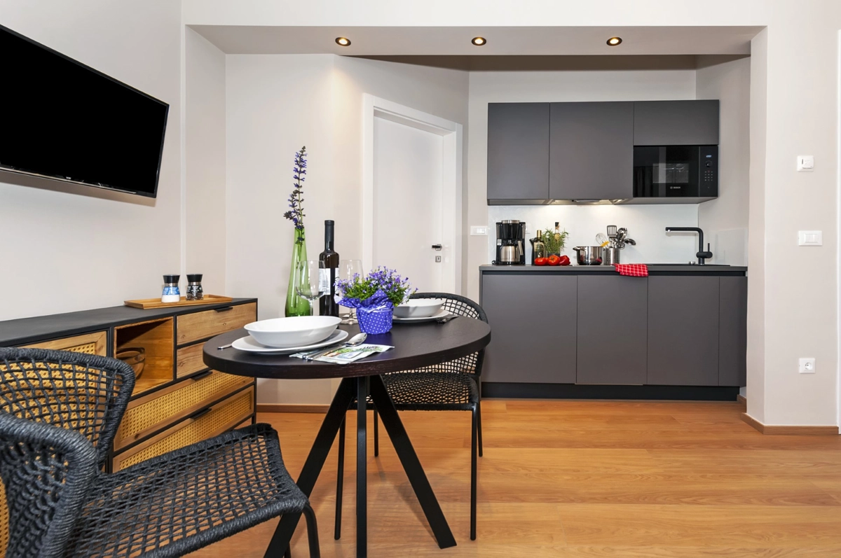 Die komplett neu renovierte Sunset Residence Rovinj zeichnet sich aus durch die zentrale Lage, modernen Design und einer großen Auswahl an Zimmern, Studios und Apartments. Gelegen in einer ruhigen Straße, sind es nur wenige Gehminuten zur Marina, dem Strand und der Altstadt von Rovinj. Die individuellen und hochwertig eingerichteten Unterkünfte garantieren einen perfekten Urlaub.