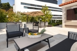 Umgeben von Restaurants und Shops